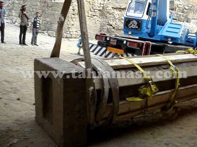 قامت وزارة الأثار بنقل، عامود " مرنبتاح" ابن رمسيس الثانى ، الى مقر المتحف الكبير، بطريقة بدائية ، تسئ للأثر.
