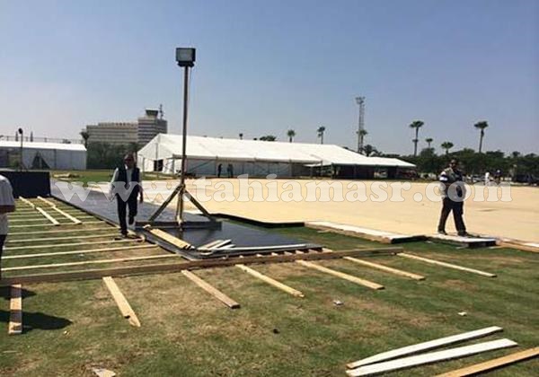 نشرت الصفحة الرسمية للرئيس "عبد الفتاح السيسي" صورة حية من موقع قناة السويس حيث تجري استعدادات حفل افتتاح القناة الجديدة، المقرر اقامته يوم 6 اغسطس المقبل، وظهرت في الصور شكل منصة الاحتفال، وبناء المسرح.