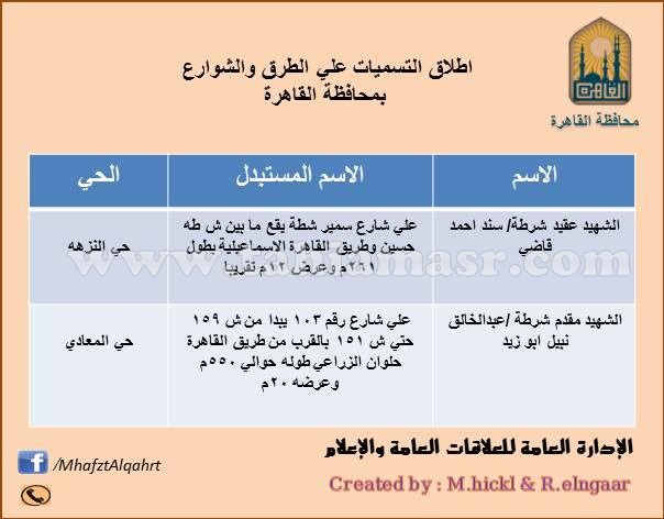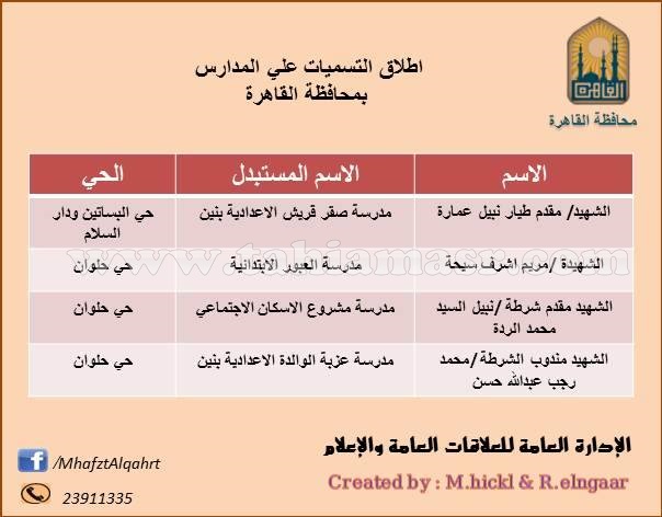 بالصور..ننشر التسميات الجديدة لشوارع و مدارس محافظة القاهرة