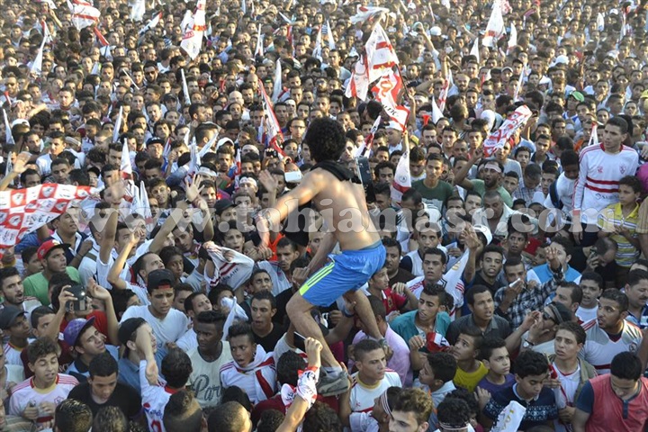 بالصور.. جماهير الزمالك تحتفل علي طريقة "مولد سيدي العريان"