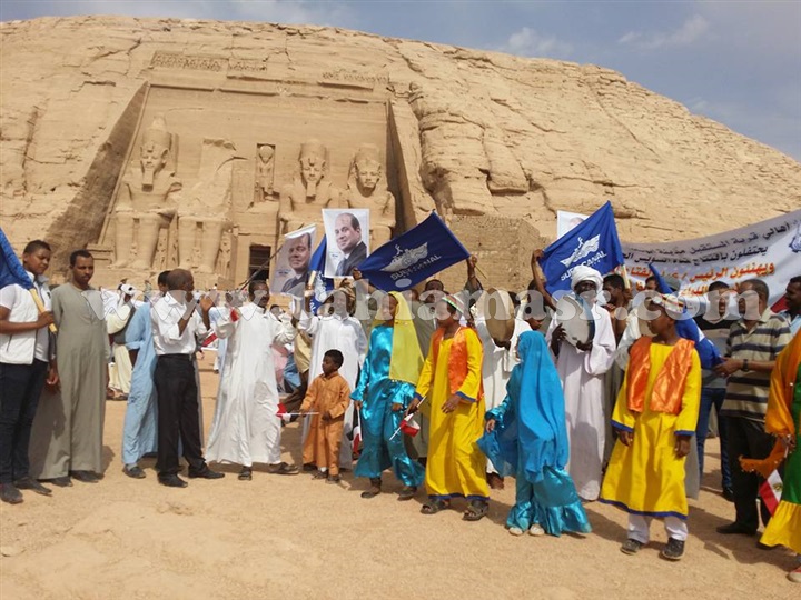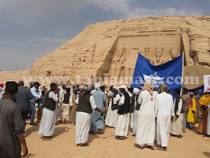 نظم اهالى مدينى ابوسمبل الواقعة جنوب محافظة اسوان ، احتفال داخل معبد ابوسمبل السياحى بمناسبة قرب افتتاح قناة السويس الجديدة.