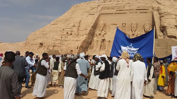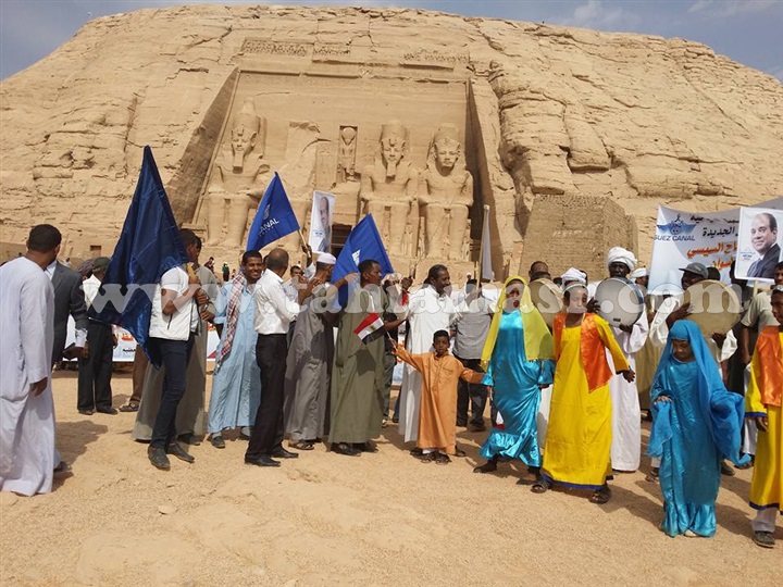 بالصور:أحتفالية شعبية امام معبد"ابوسمبل" بمناسبة افتتاح قناة السويس الجديدة