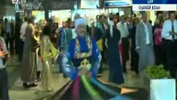 استقبل مسئولو مطار القاهرة الوفود المشاركة بحفل قناة السويس، علي أنغام الأغاني الوطنية«بشرة خير»، والرقص الشعبي.