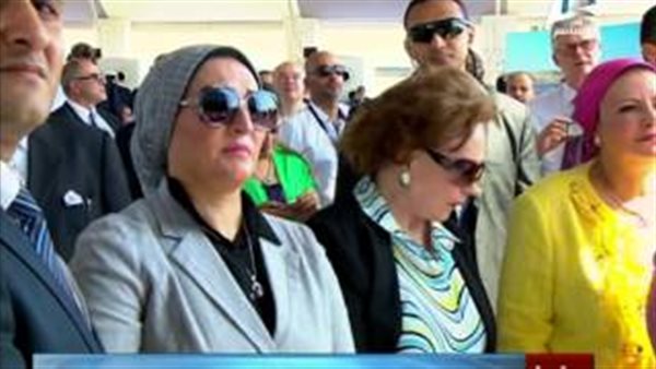 حضرت السيدة انتصار عامر زوجة الرئيس عبد الفتاح السيسي حفل افتتاح قناة السويس الجديدة وجلست بجانبها السيدة جيهان السادات زوجة الرئيس الراحل "محمد انور السادات".