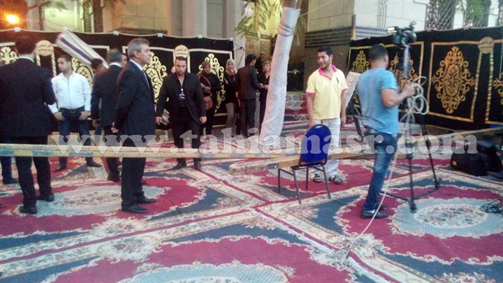 بالصور.. حواجز خشبية فى عزاء نور الشريف لمنع التصوير