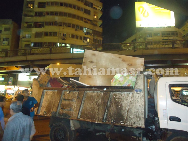 بالصور .. حملات ليلية لتطهير ميدان الجيزة من الإشغالات