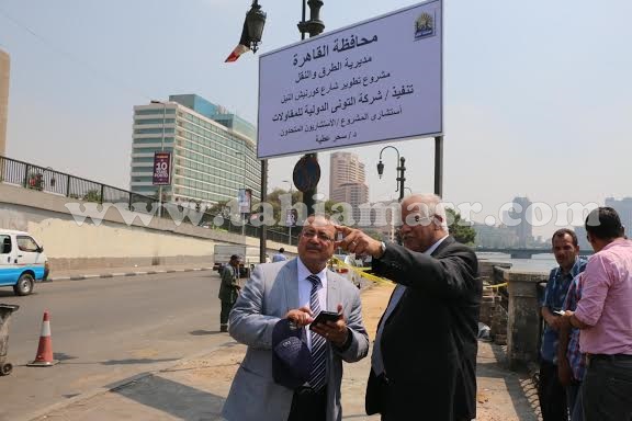 تفقد دكتور جلال مصطفي السعيد محافظ القاهرة اليوم بدء انطلاق المرحلة الأولى لمشروع تطوير كورنيش النيل والواجهة النيلية بطول 2 كم والتى تشمل إعادة تأهيل ورفع كفاءة اسفل واعلى شارع كورنيش النيل من كوبرى اكتوبر وحتى كوبرى قصر النيل .