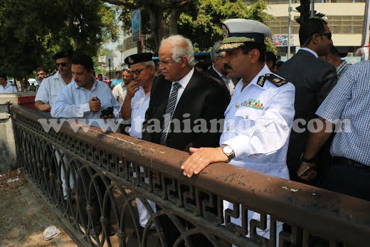 ورافق المحافظ أثناء الجولة مساعد وزير الداخلية اللواء حامد العقيلي مدير شرطة المسطحات المائية واللواء مصطفي النمر من قطاع شمال القاهرة واللواء ابراهيم عوض مدير شرطة المرافق القاهرة واللواء ابراهيم عبد الهادي رئيس حي بولاق ابو العلا.