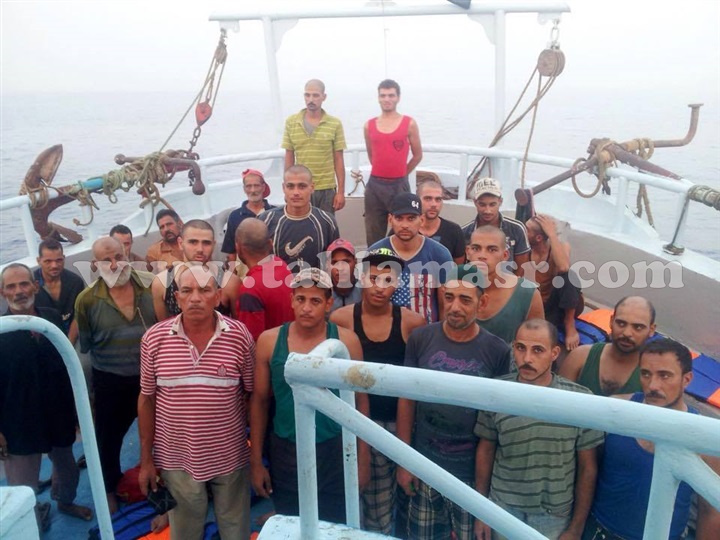 بالصور:القوات البحرية تنقذ 31 صياد مصرى من الغرق