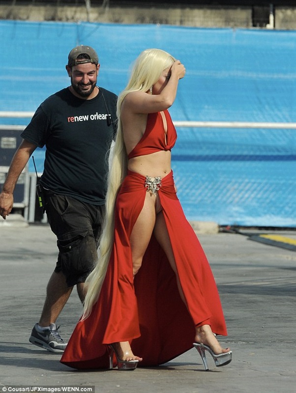 كما عودتنا الممثلة الأجنبية "ليدي غاغا" علي ملابسها الجريئة والإطلالات التي لها طابع خاص بها، كانت أخر إطلالاتها فستان أحمر جرئ، مكون من قطعتين حمالة صدر وتنورة طويلة بفتحة كبيرة بطول الجيب مما أدي لظهور ملابسها الداخلية من تحت الفستان، كما أرتدت صندل من الكعب العالي الشفاف، اليك الصور.