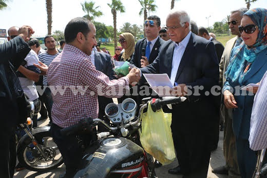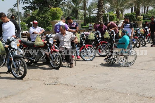 بالصور..محافظ القاهرة يسلم المعاقيين 48 دراجة بخارية