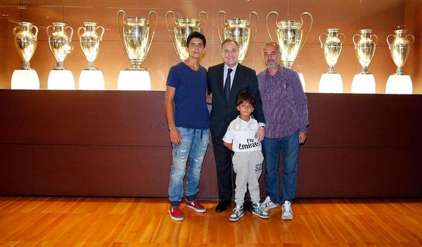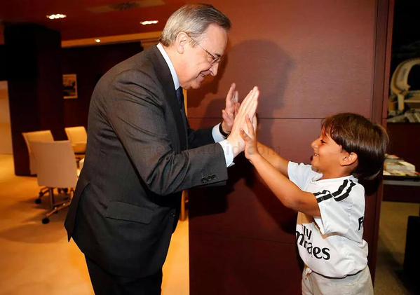 بالصور..رئيس نادي ريال مدريد يستقبل الطفل السوري الذي عرقلته المذيعة المجرية