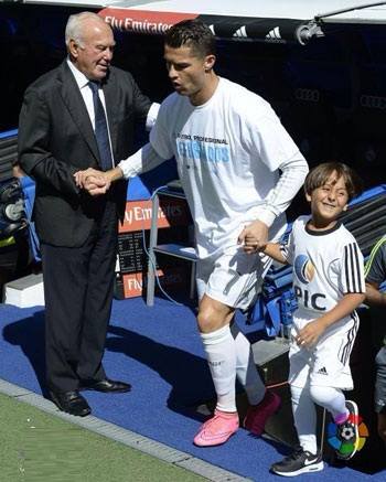 بالفيديو والصور.. كريستيانو رونالدو يدخل مباراة "غرناطة" بصحبه الطفل السوري "زياد"
