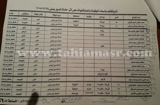 ننشر أسماء 37 حالة وفاة بين صفوف الحجاج المصريين، في حادث مشعر «منى»، الذى وقع أول أمس الخميس.