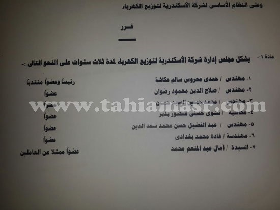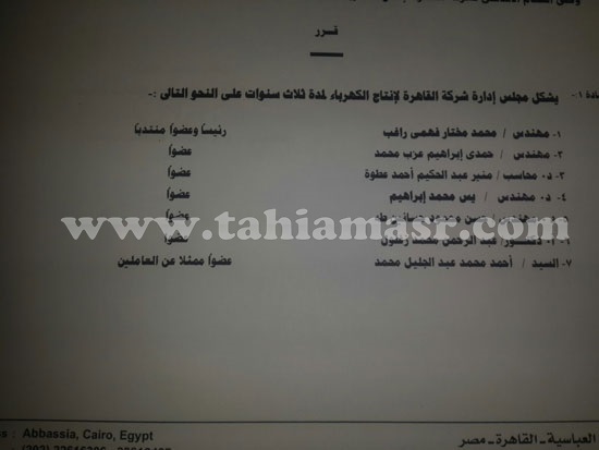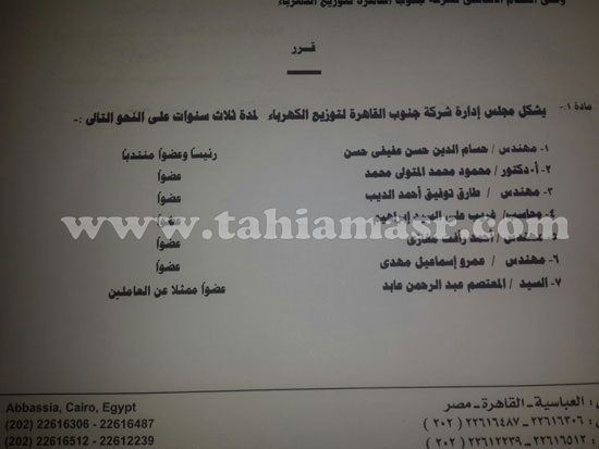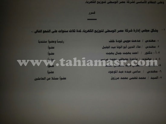 بالصور .. ننشر أسماء حركة التغييرات في شركات التوزيع وإنتاج الكهرباء