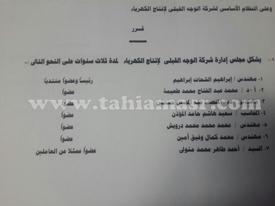-المهندس إبراهيم الشحات إبراهيم، رئيس مجلس إدارة شركة الوجه القبلى لإنتاج الكهرباء.