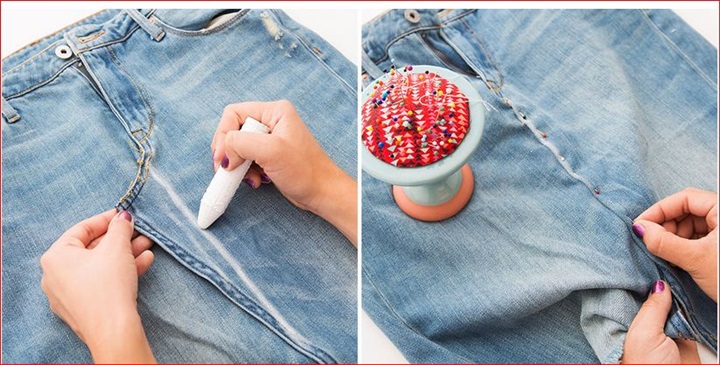 بالصور.. طريقة تحويل البنطلون الجينز إلي جيبة