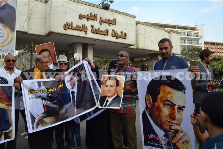 رقص عدد من انصار الرئيس الأسبق محمد حسني مبارك علي أنغام الأغاني الوطنية أمام مستشفي المعادي العسكري، مرددين هتافات مؤيدة للرئيس الأسبق، رافعين عدد صور له.