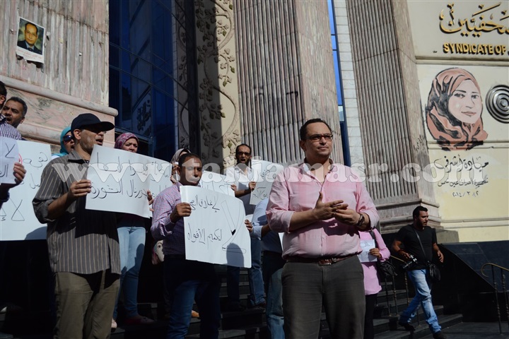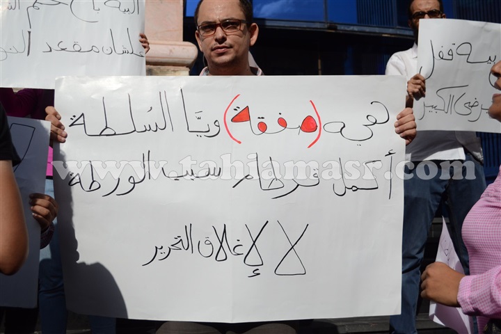نظم عدد من صحفي جريدة التحرير وقفة احتجاجية علي سلالم نقابة الصحفيين ظهر اليوم الخميس، احتجاجا علي غلق الجريدة الورقية اليومية.