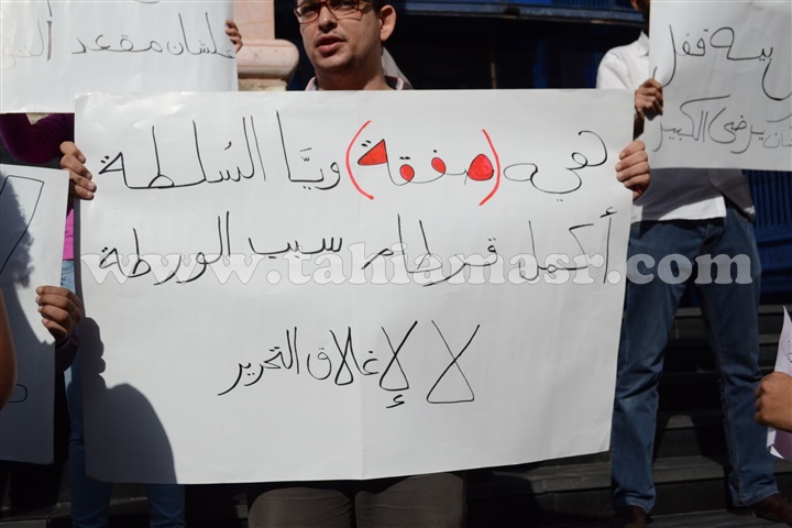 ورفع الصحفيون لافتات تندد بقرار الإغلاق، كما رددوا هتافات ضد إدارة الجريدة.