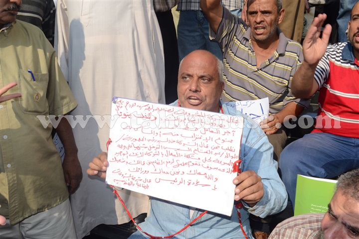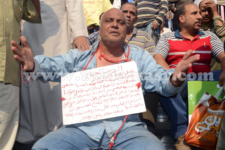 وطالب المتظاهرين من المسئوليين سرعة التدخل لصرف مستاحقتهم المتأخرة، كما رفع عدد منهم لافتات تستغيث بالرئيس عبد الفتاح السيسي وتطالبه بالتدخل لانقاذ 2200 أسرة من التشرد.