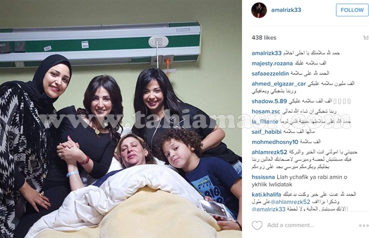 وقامت الفنانة "أمل رزق" بزيارة أحلام بالمستشفي وقامت بنشر صورة من الزيارة عبر حسابها الخاص على موقع الصور "انستجرام" وعلقت عليها قائلة "حمدالله على سلامتك يا أحلى أحلام".