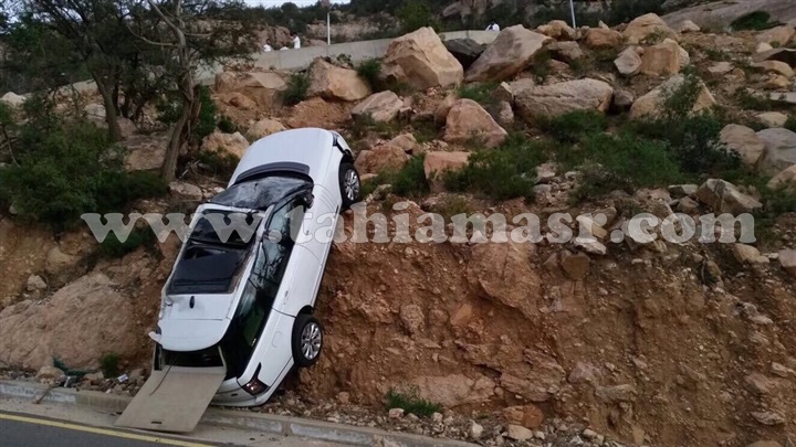 وفوجئ عدد من السائقين السعوديين علي أحد الطرق بسقوط سيارة بسرعة كبيرة علي جانب الطريق، ليعلموا بعد ذلك انها سقطت من فوق الجبل، ولم يتسبب الحادث بخسائر بشرية.