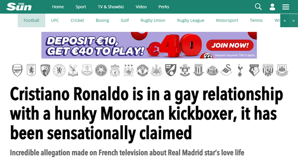 يذكر أن دانيال ريولو المشارك في برنامج رياضي فرنسي "Touche pas a mon sport"، ألمح إلى ان العلاقة بين رونالدو وهاري هي أكثر من مجرد صداقة، مشيراً إلى رونالدو يسافر لثلاث أو أربع مرات أسبوعياً للقاء هاري".