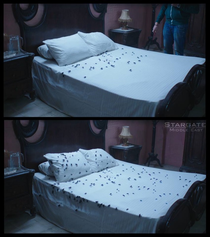 تبين الصور كيفية ظهور الصراصير والجراد وكذلك ظهور الجن الحافي المتحكم بروح وطرق ظهور روح بأشكالها المرعبة قبل وبعد عملية المونتاج.