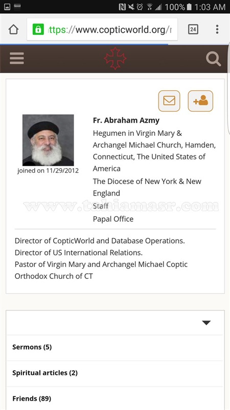 ونحن في مصر أقدر علي التعامل مع مشاكلنا وما فيها من أحداث، أرجوكم رجاء خالص من المسيح منع هذا التصرف غير المقبول تماما في كل كنائسنا في أمريكا.