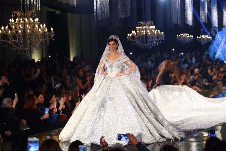 بالصور.. 5 مليون دولار ثمن فستان زفاف يسرا اللوزي بتوقيع هاني البحيري