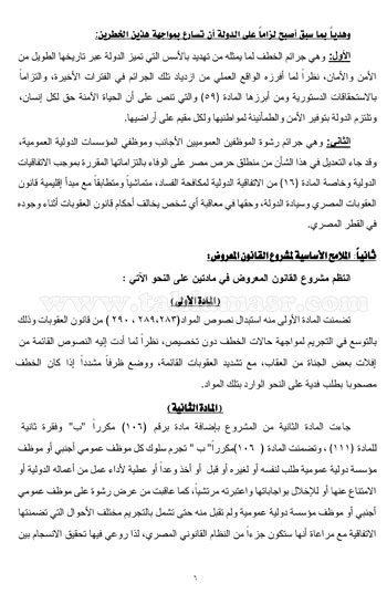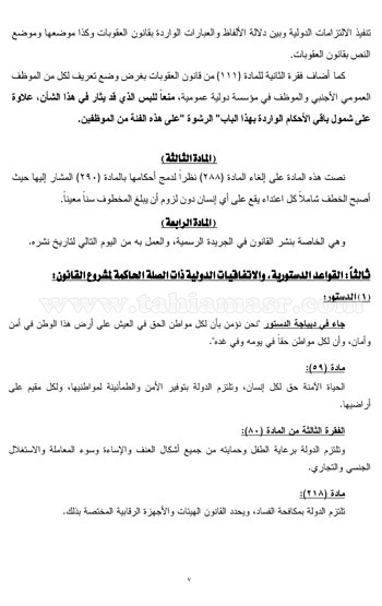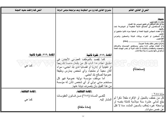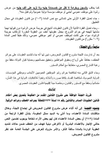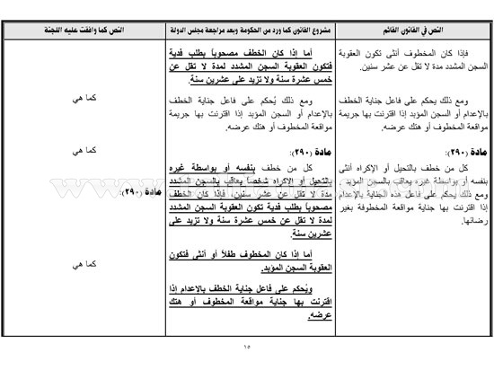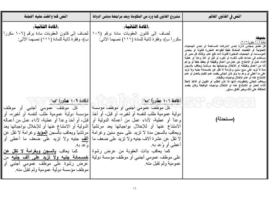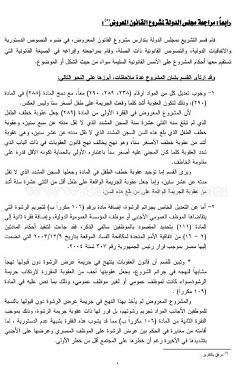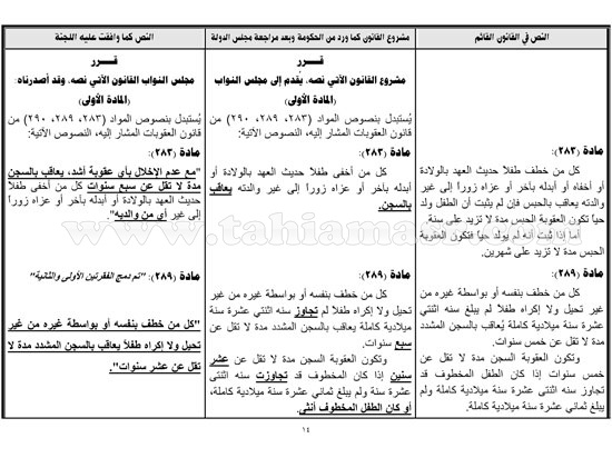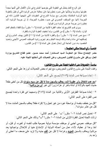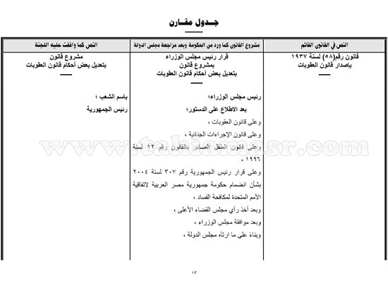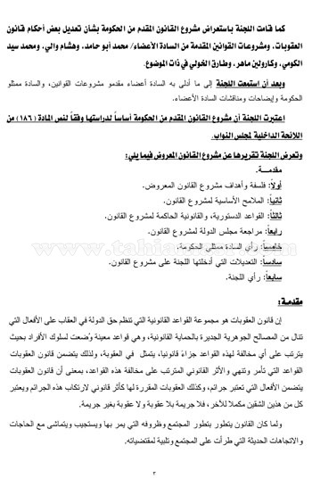 وننشر التقرير البرلمانى حول مشروع تعديل قانون العقوبات.