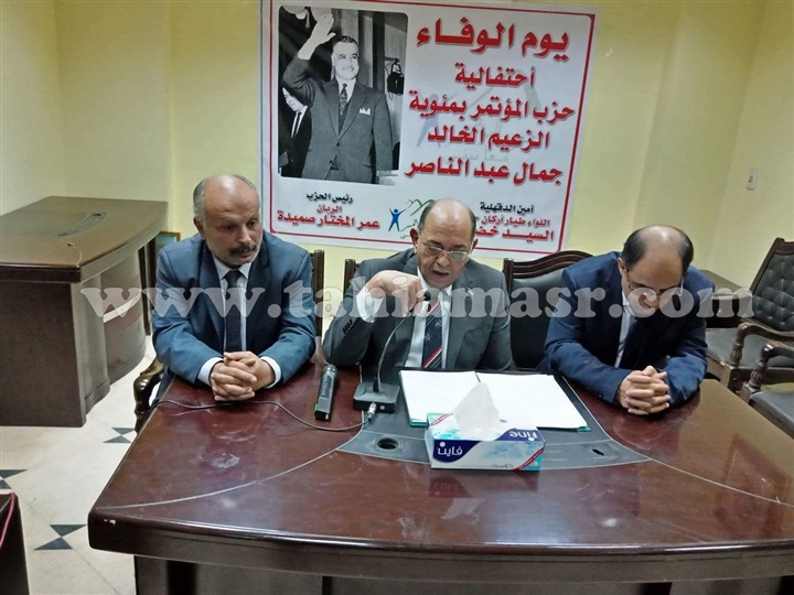 نظمت أمانة حزب المؤتمر بمحافظة الدقهلية أحتفالية الوفاء بمئوية الزعيم الخالد جمال عبد الناصر تحت رعاية لواء طيار السيد خضر الامين العام لحزب المؤتمر بمحافظة الدقهلية الدقهلية.