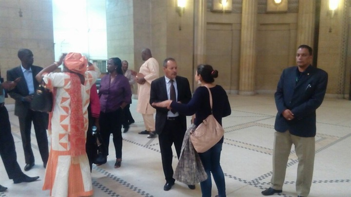 وقام المستشار محمد رضا باصطحاب الوفد الأفريقي في جولة تفقدية بدار القضاء العالي وقام بتعريفهم بتاريخ المحكمة وتاريخ إنشاء محكمة النقض والقضايا التاريخية التي شهدتها قاعات محكمة النقض