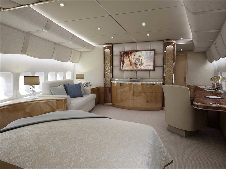وتظهر هذه الصور أمثلة لما يمكن أن يكون داخل مثل هذه الطائرات، وفقًا لنموذج تم بيعه سابقًا وهو “747-8 VIP”.
