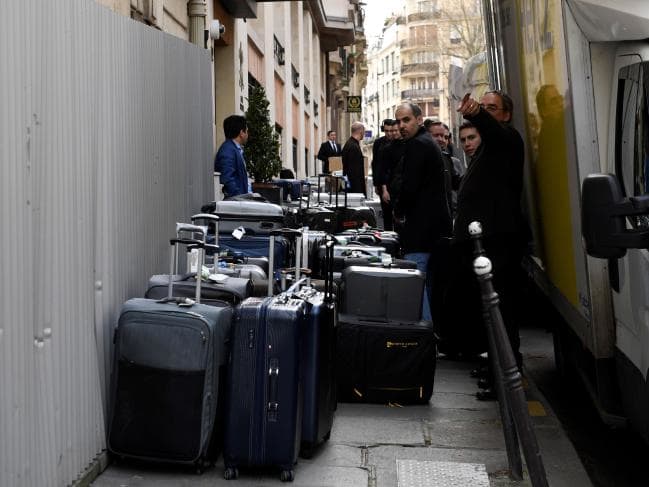 لتقط مصور فوتوغرافي في باريس صورًا تظهر حقائب سفر ولي العهد السعودي الأمير محمد بن سلمان، وأمتعته أثناء تفريغها من شاحنات التحميل عقب وصول الأمير العاصمة الفرنسية يوم الأحد.