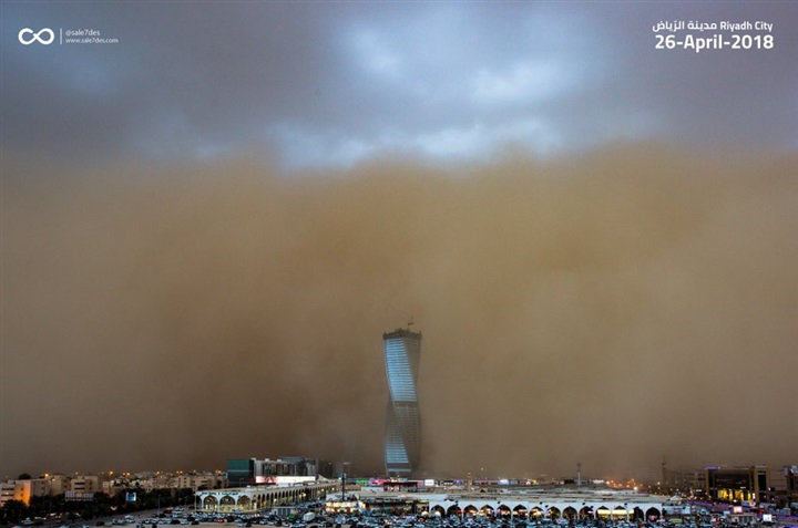 بالصور.. شاهد لحظة اجتياح عاصفة رملية لمدينة الرياض