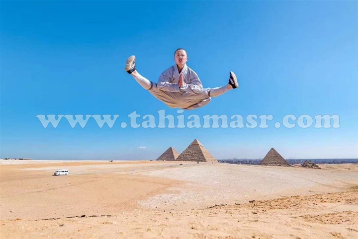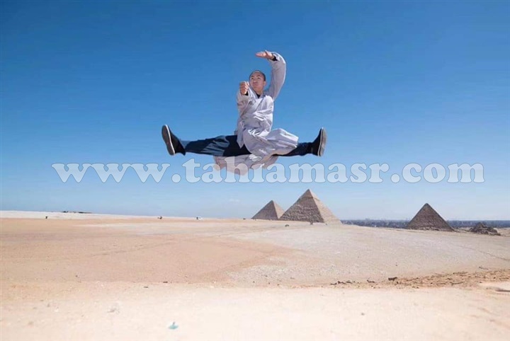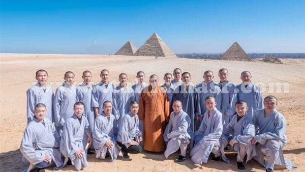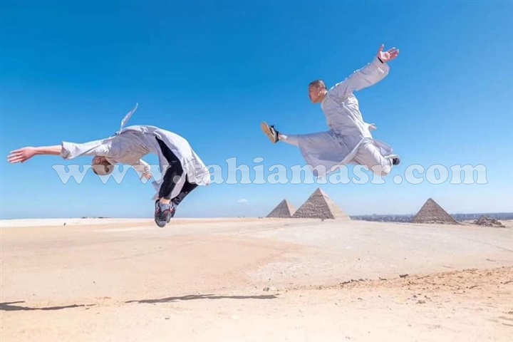 بالصور.. جلسة تصوير رهبان معبد شاولين للمحاربين في الإهرامات