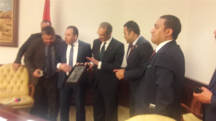 أهدي وزير الاتصالات وتكنولوجيا الاتصالات الدكتور عمرو طلعت النائب أحمد بدوي رئيس لجنة الاتصالات وتكنولوجيا المعلومات بمجلس النواب ايقونة " ساشيت" ايقونة حفظ البيانات لدي القدماء المصريين