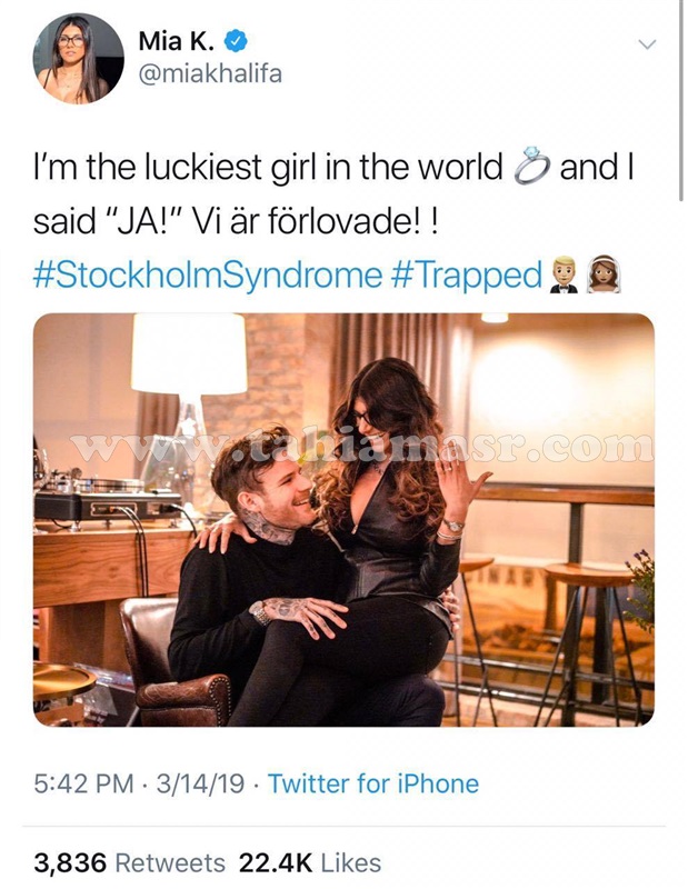 بالصور.. أول تعليق من الممثلة الاباحية مايا خليفة علي خبر خطوبتها