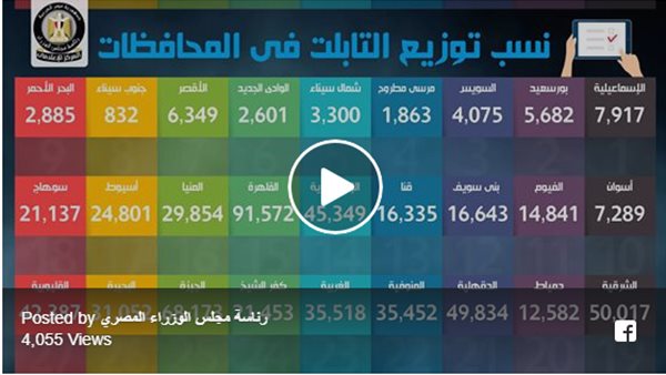 نشر المركز الإعلامي لمجلس الوزراء، فيديو يستعرض من خلاله ردود أفعال وآراء عدد من أولياء الأمور والمدرسين وطلاب الصف الأول الثانوي من الجنسين البنين والبنات بالمدارس الحكومية والخاصة والتي تغطي القطاعات الجغرافية بأنحاء الجمهورية، عقب توزيع التابلت المدرسي على جميع الطلاب بالمديريات التعليمية في إطار تطبيق منظومة التعليم الجديدة بعدد 649.793 جهاز على مستوى الجمهورية.