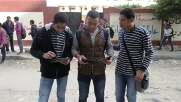 طلاب الصف الأول الثانوي يبدأون امتحان الأحياء بالنظام الإلكتروني