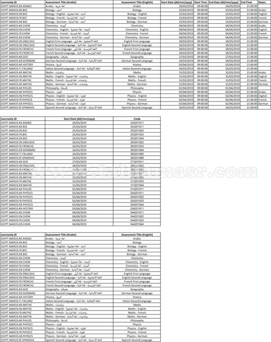 بالصور.. الأكواد الكاملة لامتحانات مواد الصف الأول الثانوي