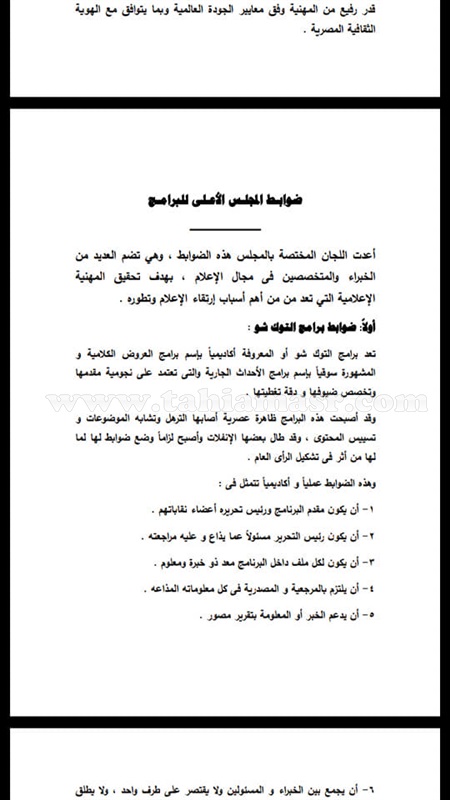 ننشر ضوابط المجلس الأعلى للإعلام بخصوص برامج التوك شو