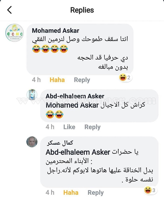 ونشر شخص يدعى عبد الحليم عسكر صور نيرمين الفقي مغازلا إياها وكتب عليها: "إنتي حب السنين وكل الفيتامين"، ليعلق له صاحب الأكونت الذي يدعى محمد عسكر وهو شقيقه: "إنت سقف طموحك وصل لنيرمين الفقي، دي قد الحجة يا إبني"، ليدخل والدهما والذي يدعى كمال عسكر في سباق التعليقات وكتب: "يا حضرات الأبناء المحترمين بدل الخناقة هاتوها لأبوكم لأنه راجل نفسه حلوة".