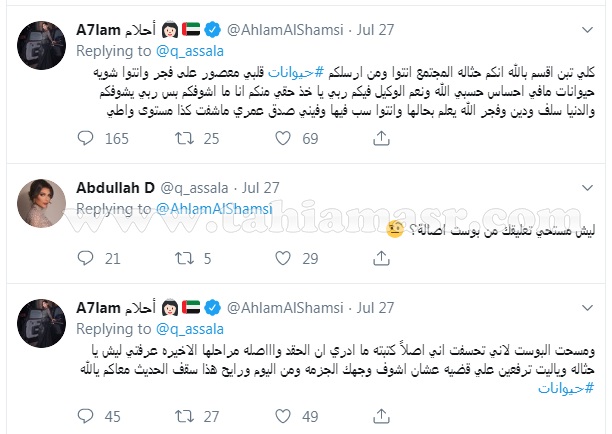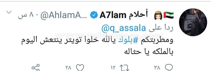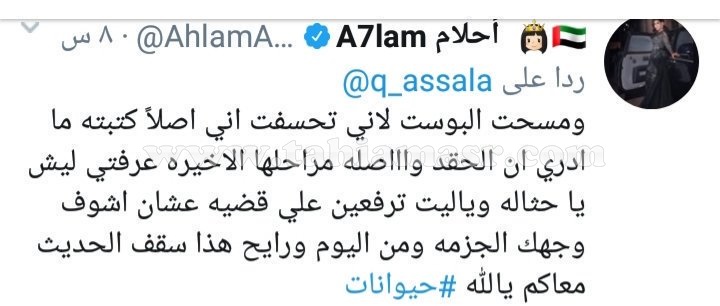 وبعد رد أصالة، حذفت أحلام البوست الأمر الذي آثار استغراب المتابعين حول السبب، وبعد الهجوم من جمهور أصالة، أعلنت أحلام عن حظر الفنانة أصالة بالبلوك.