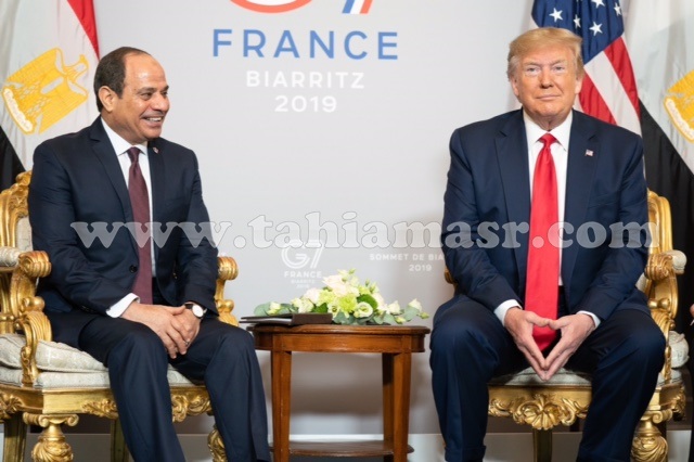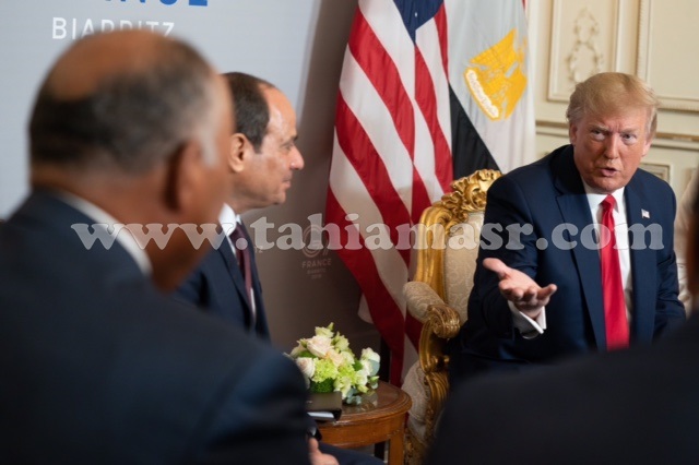 والتقى الرئيس السيسى نظيره الأمريكى على هامش فعاليات قمة مجموعة الدول السبع بفرنسا. وقال السفير بسام راضى المتحدث الرسمى باسم رئاسة الجمهورية، إن الرئيس أكد خلال اللقاء على قوة وعمق العلاقات الاستراتيجية التى تربط بين مصر والولايات المتحدة، مشيداً بما تشهده تلك العلاقات من تطور إيجابى متواصل خلال إدارة الرئيس "ترامب".