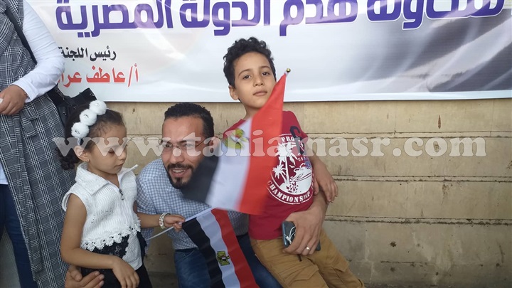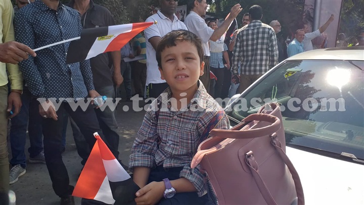 ورفع المتظاهرين أعلام مصر، مرددين هتافات "تحيا مصر ويحيا السيسي، ومعاك ياريس"، وغيرها، واللافت للنظر هو الحضور القوي للأطفال اللذين حرصوا علي المجئ للتعبير عن حبهم للرئيس.