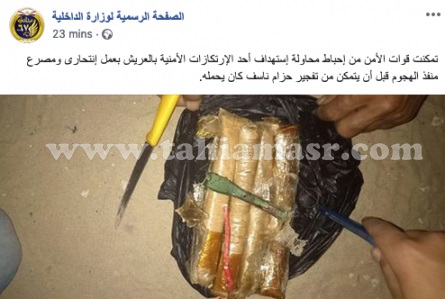 بالصور.. إحباط هجوم انتحاري علي كمين بالعريش