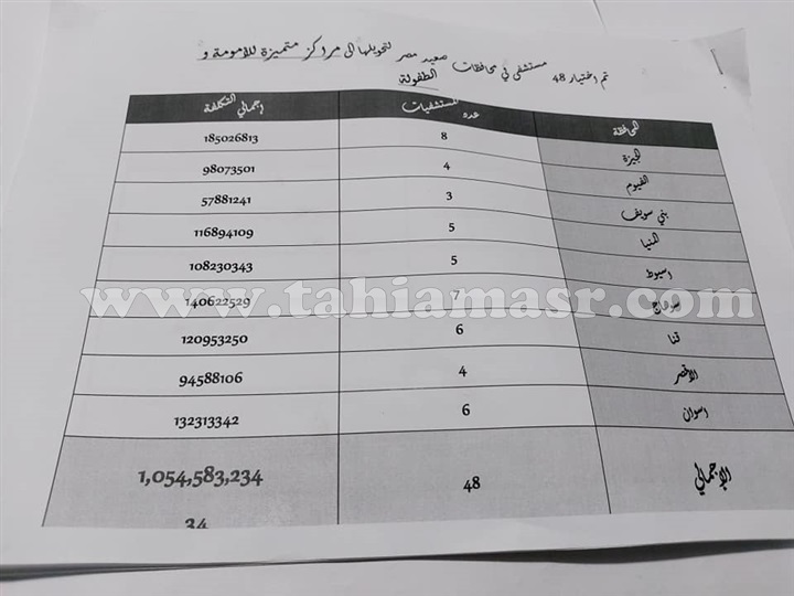 وأضاف النائب محمود بدر، تم الاتفاق على تطوير 48 مستشفى تكاملى، وتحويلهم لمراكز للأمومة والطفولة فى 9 محافظات "الجيزة-الفيوم-بنى سويف-المنيا-اسيوط-سوهاج-قنا-الاقصر-اسوان".